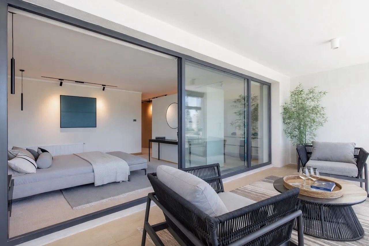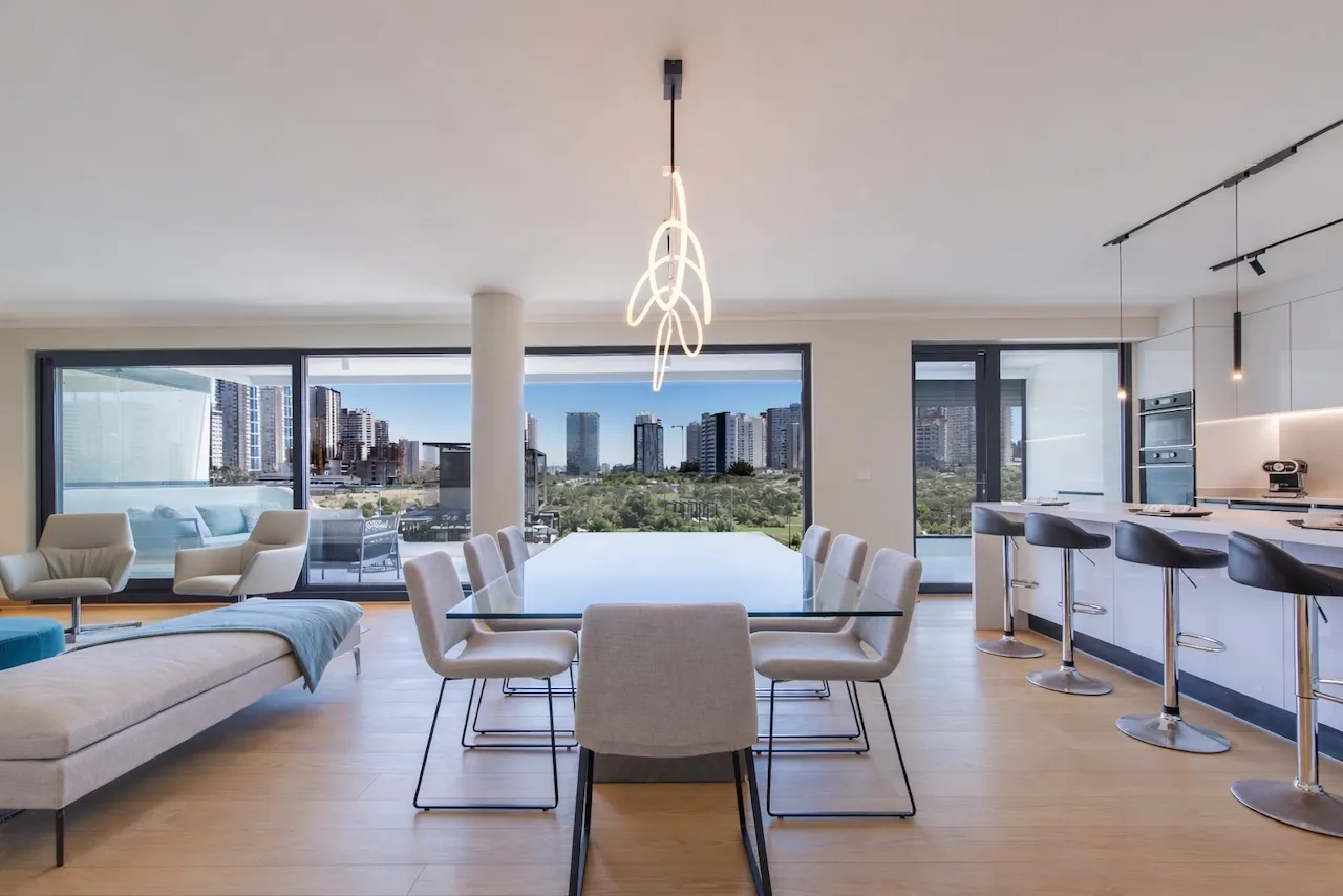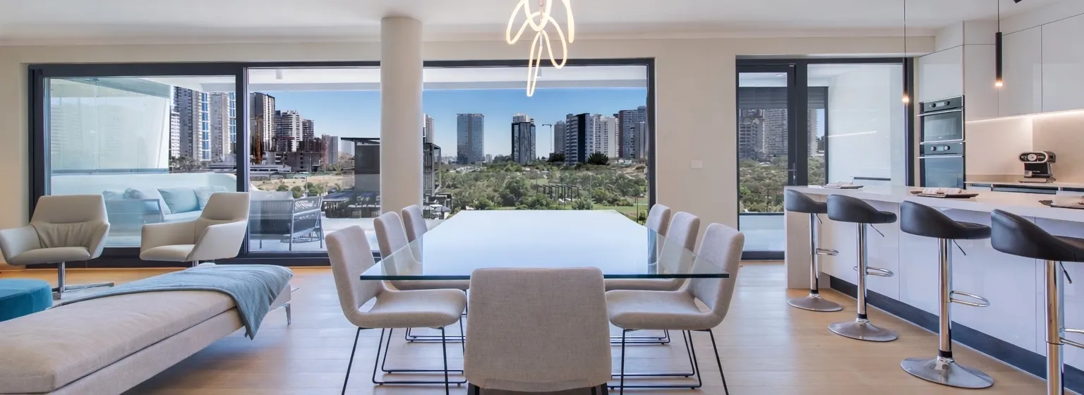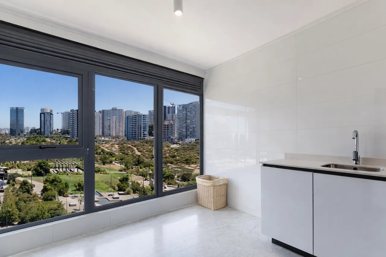 La fachada principal del edificio se encuentra estratégicamente orientada hacia el norte, lo que proporciona una espectacular vista panorámica del Parque La Foresta. Además, esta orientación garantiza que la fachada reciba la mayor cantidad de sol y luz natural durante el día.